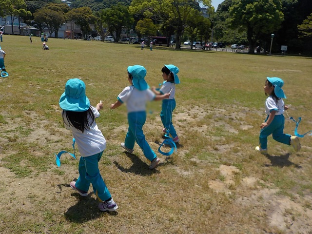 お友だちを追いかける子どもたち。 |