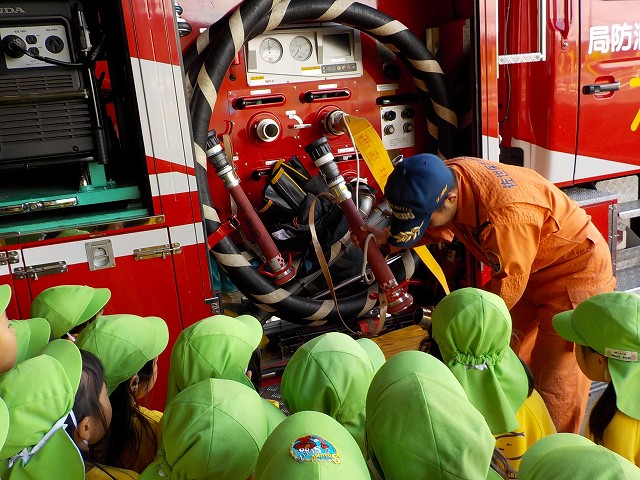 消防士さんのお話の後は、消防署内の見学スタート!!