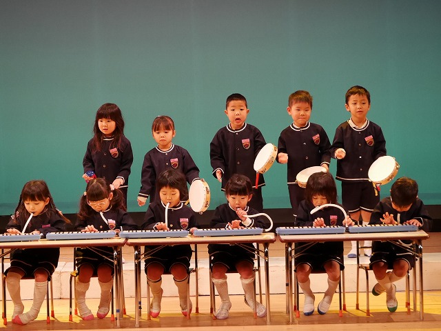 年少・年中組のお友だちが合奏や歌を披露してくれました!