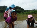 しっかりと稲を持ってずぶずぶっと泥の中に植えました。