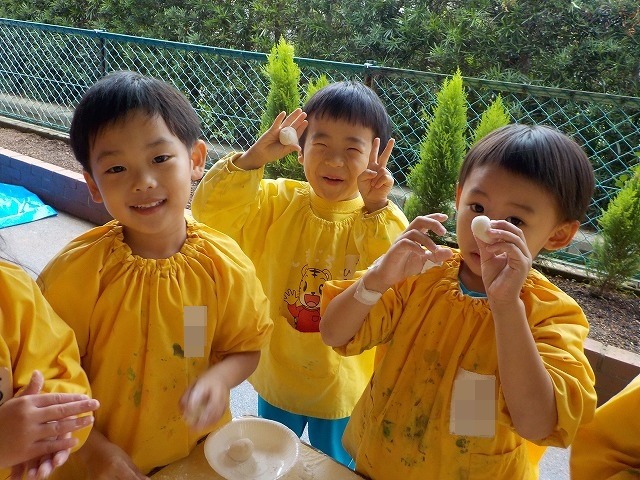 「あったかいね〜」「気持ちいい〜」とお餅の感触を楽しみながら、