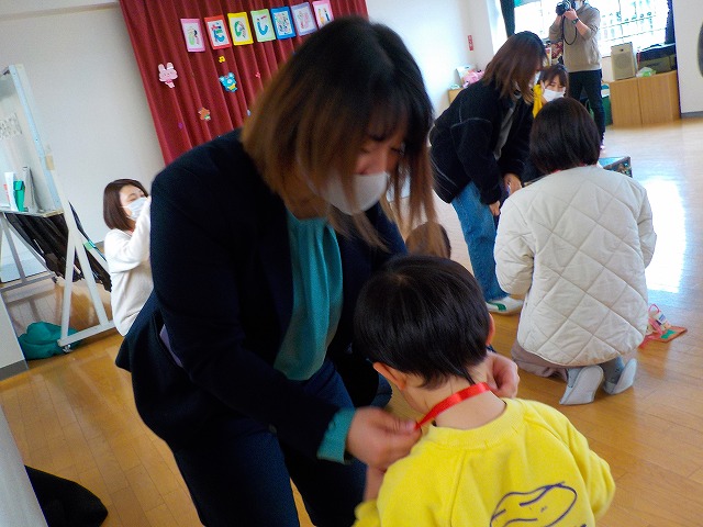 今日は大好きなお母さんたちにメダルをかけてもらいました♪