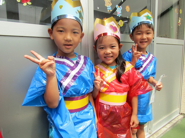 年長さんは赤と青の衣装でまるで本当の織姫、彦星のようです☆