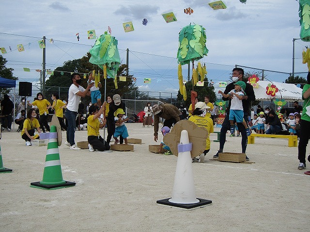 次は年少さんの障がい物競走「明日天気になあれ!」です!